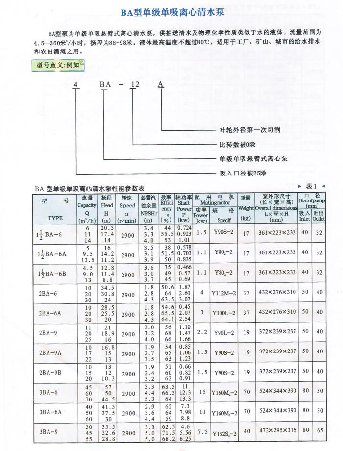 BA型单级单吸清水泵