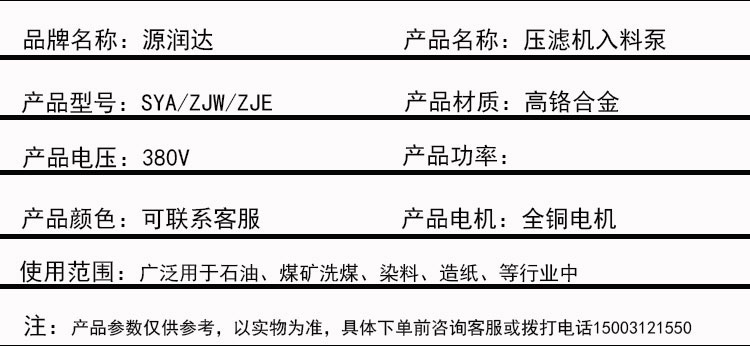 源润水泵多年制造并安装压滤机入料泵,下面为您总结压滤机入料泵的使用安全规定:
